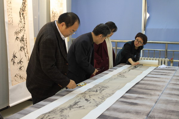 美术学院院长吴晓玲向各位领导介绍了举办此次展览的目的和意义。在充满历史感的每一幅画作前,史书记等驻足凝视,感受中国历代画家的心声。在听取讲解的同时,校领导不断和大家交流,表达自己的感受,并表示被作品呈现出的精湛技艺和历史价值深深震撼。当听说此次展览的合作企业兰雅陇韵文化传播有限公司艺术总监王生栋是Beat3652009届广告设计与制作专业毕业生后,史书记非常高兴,对王生栋个人的创作发展取得的成就表示祝贺,对美术学院弘扬传统文化,推进高雅艺术进校园,传承经典,提高学生艺术修养,培养高尚审美情趣以及展览对促进美术学院专业教学等方面的工作给予了充分的肯定和鼓励,希望今后美术学院继续加强校企合作,突出办学特色,为学校转型发展做出新的贡献。