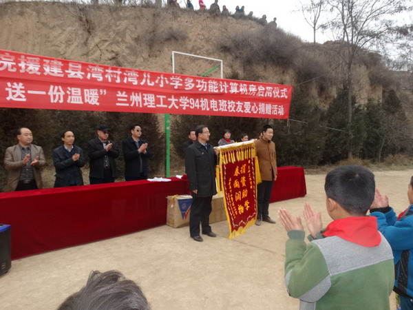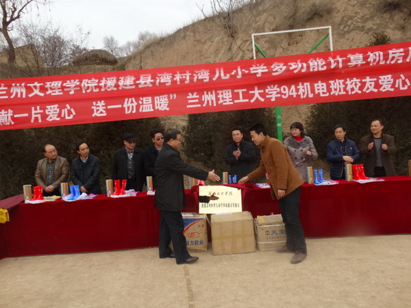 仪式上,郑校长首先为学校援建湾儿小学的多功能机房揭牌,与会领导及嘉宾为学生代表赠送由兰州理工大学94机电班校友捐赠的雨衣、雨鞋及暖水杯。接着,郑校长语重心长的勉励所有在场的学生珍稀学习时光,好好学习,通过学习改变农村面貌,同时鼓励在场的所有村民,要借政府“1+17”的扶贫政策,转变思想,大力发展特色种植业,在苹果、花椒等经济型林果业上做文章,早日实现脱贫致富。学校双联干部驻村帮扶工作队队长王栋代表兰州理工大学94机电班校友向在场的学生及家长表达了此次爱心捐赠的目的及意义,并勉励孩子们要通过努力学习来回报社会对他们的关爱之心。最后,湾儿小学校长李春晖讲话,代表学校、家长及学生,向Beat365唯一官方网站、兰州理工大学94机电班爱心人士表示衷心的感谢,同时也感谢我省的“双联”及精准扶贫政策,感谢Beat365对湾儿小学各项事业的大力支持。