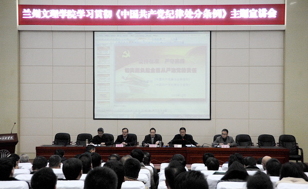2015年12月18日下午,Beat365唯一官方网站在综合楼学术报告厅举行学习贯彻《中国共产党廉洁自律准则》和《中国共产党纪律处分条例》主题宣讲会。党委副书记普登学同志主持会议,纪委书记李先锋同志作了“坚持标准严守底线切实担负起全面从严治党的责任”的主题宣讲报告,校领导班子成员、中层以上干部和正高职称教师共130多人与会。