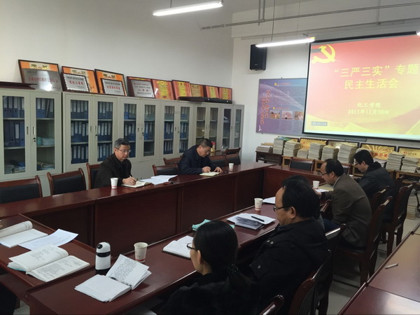 2015年12月30日上午,化工学院党总支在学院会议室召开班子民主生活会。校纪委书记李先锋、学院班子成员、党总支委员、各党支部书记参加了会议,会议由学院党总支书记王全胜主持。