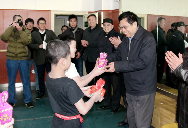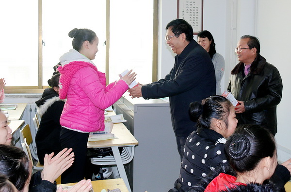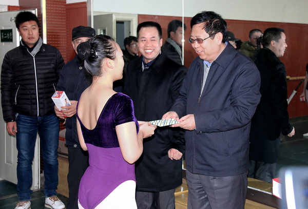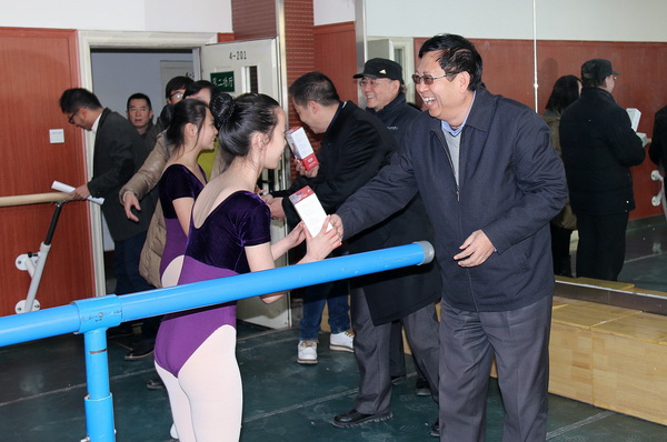 汪建华校长一行先后来到舞蹈、戏曲功厅和文化课教室,每到一处孩子们都高兴地给汪校长送来新年的问候,并向校长赠送了自己制作的新年贺卡和小礼物。汪校长细心聆听了授课老师对班级情况的介绍,对同学们在一年中取得的学习成果表示祝贺,对老师们的辛勤付出予以点赞,并叮嘱同学们:在学好专业课的基础上,一定要强化对文化课的学习,只有学好文化课才能让将来的艺术之路走的更高、更顺畅,最后,汪校长为孩子们发放了节日礼品,送上了节日问候,与孩子们合影留念。