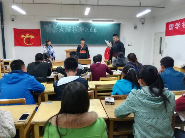博�国学社“一社一品”之国学文化季先后开展了“国学大脑补之一站到底”中华传统文化知识竞赛、“知秋”古典诗词文赋朗诵比赛、“悠悠清茶,啜茗生活”雅趣茶文化表演、襄尺礼射等活动,并举办了国学文化季活动展播,集中展示了各项活动特色,激发起同学们学习国学经典的兴趣,传播弘扬中华传统文化,构建书香校园。