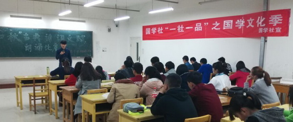 河柳文学社“一社一品”之第一届文学节由书信大赛、怀念旧时光演说大赛、第八届现场文学创作大赛及文学讲座四项活动组成,其中文学讲座由文学院王金娥副院长主讲,书信大赛邀请到晨曦文学社等六家外校社团共同参与。文学节引导同学们去感受、去追寻充实的内心世界,丰富了同学们的精神生活,提高了同学们的文化修养。