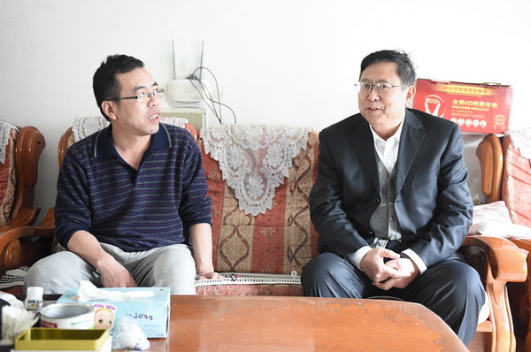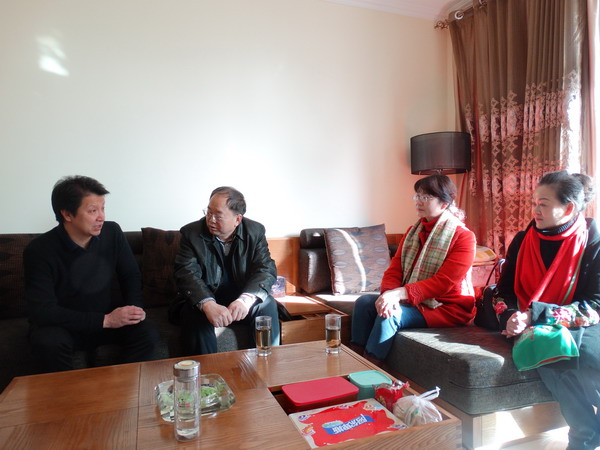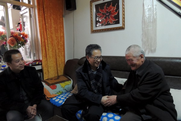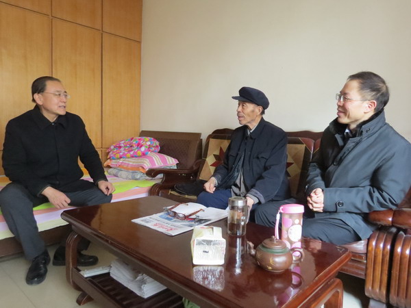 党委副书记普登学在工会主席路鹏和宣传部副部长贺志军的陪同下亲切慰问了离休干部张凤鸣和退休职工金德仁。