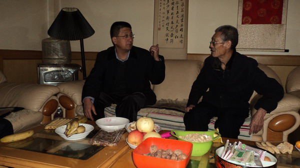 纪委书记李先锋在纪委副书记于卫的陪同下亲切慰问了离休干部郭晓峰和退休教授郭自强。