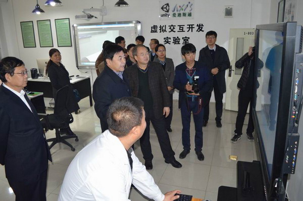3月8日上午,甘肃省教育厅总督学李晶、纪检组长张晶、副厅长刘宏一行在校长汪建华、副校长郑伟强、教务处处长薛怀庆的陪同下,莅临Beat365数字媒体学院数字媒体实验中心考察调研。 数字媒体学院院长李恒杰教授、学院党总支书记陈小琴、数字媒体系主任张成文、实验中心主任洪晓芬、办公室主任高毅热情接待并陪同各位领导考察调研。院长李恒杰及实验室负责人向各位领导介绍了学院的基本情况、办学特色,重点介绍了实验室建设、教学与科研项目以及学生实训项目开展情况。总督学李晶一行对我院虚拟现实、互动媒体实验室以及校企合作共建的福丰达立体影视基地承担的实践项目产生了浓厚的兴趣,观看了我院学生获奖作品展播、360度全景校园漫游虚拟交互项目,积极体验增强现实数据头盔等交互设备,驻足考察立体影视制作情况并与我院大三实训学生亲切交流,对我院短期内取得的丰硕教学实践成果予以肯定。参观过程中,总督学李晶详细询问3D摄像机制作全景校园、2D转3D制作立体影视的技术原理,并就虚拟现实技术的实现流程、经费使用,以及在互联网+时代下信息化政务办公、教学、医疗中的应用前景,与实验室项目负责人进行了交流。 参观结束,厅领导一行对数字媒体学院“校企融合、强化应用、技艺结合”的办学思路表示赞赏,肯定了数字媒体学院实验室建设使用工作,并提出学校专业建设与人才培养方面要注重产学研相结合,今后有机会将继续来我院追踪考察调研。