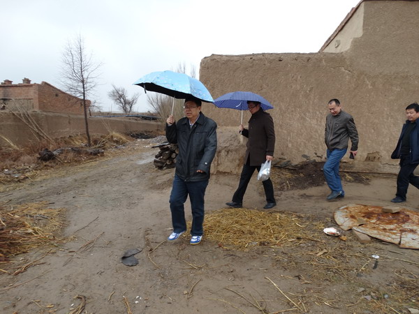 3月22日,校长汪建华、纪委书记李先锋在双联办副主任、宣传部部长赵学森、审计处处长王庆荣的陪同下,冒雨前往古浪县老城村、新城村调研学校双联和精准扶贫工作。