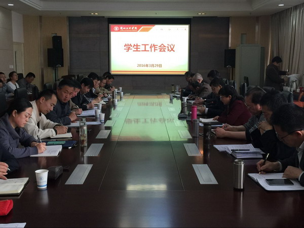 2016年3月29日,张兆勤副校长在第一会议室主持召开学生工作会,安排部署2016年学生工作,校长汪建华出席会议并作重要讲话。校学生工作委员会成员;各学院党总支书记;学工办主任、辅导员及学生处全体工作人员共30余人参加会议。
