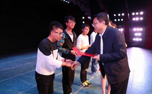 为了进一步落实学校第一届党代会精神,更好更快促进学院应用型人才培养工作与专业转型发展,3月31日晚,数字媒体学院在校实验剧场隆重举行2015年学科竞赛颁奖典礼。校长汪建华教授、学生处处长李宗刚、教务处副处长张莉、校团委书记孙亮及科技处陈兵建副教授出席颁奖典礼。院长李恒杰教授、院党总支书记陈小琴、副院长张毅及学院师生共400余人参加了颁奖典礼。 颁奖典礼上,数字媒体学院党总支书记陈小琴致开幕词,她希望以此次颁奖典礼为契机,激励数字媒体学院师生今后再接再厉,争取取得更大的进步。典礼播放了2015年各类学科竞赛的视频;汪建华校长及各位颁奖嘉宾为获得各个奖项的同学及教师代表颁发了证书和奖金。 在2015年度,数字媒体学院师生代表学校参加了全国大学生数字媒体科技作品竞赛、全国大学生广告艺术大赛、全国数字艺术设计大赛等一系列学科竞赛,并取得了优异的成绩。其中,在由李恒杰院长带队赴北京参加的第三届全国大学生数字媒体科技作品竞赛中,数字媒体学院学生共获得一等奖1项、二等奖4项、三等奖10项;在第七届全国大学生广告艺术大赛中,获得国家级优秀奖1项,省级二等奖1项、三等奖2项、优秀奖17项;在第二届TCL杯中国好创意暨第九届全国数字艺术设计大赛中获得银奖1项、优秀奖1项。 颁奖典礼上,获奖学生代表纷纷发表获奖感言,与同学们分享成功的喜悦和付出的艰辛;张成文老师代表学院教师为同学们鼓劲加油;王士勇老师发起第八届全国大学生广告艺术大赛总动员,将典礼的氛围烘托得更加积极向上、催人奋进。 (撰稿:赵�媛 摄影:高毅)