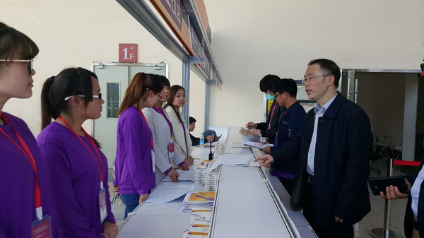 进入展馆后,普书记来到大区服务工作台前与Beat365志愿者亲切交谈,询问她们在工作中遇到的困难以及收获,并对志愿者们寄予厚望,希望志愿者们在工作中展现文理学子的精神风貌,爱岗敬业;充分运用所学的知识,在实践中锻炼自己,提高自身的综合素质;注意安全,遵守相关规定,普书记对同学们表现出来的良好精神风貌和服务态度表示赞赏,随后,普书记又与本次博览会组委会的人员就近期志愿者的工作情况和问题等方面进行了意见交流。最后,在展馆内,普书记与新闻传播学院李壮、旅游学院张小丽同学进行了简短的交谈,并与志愿者们亲切合影。