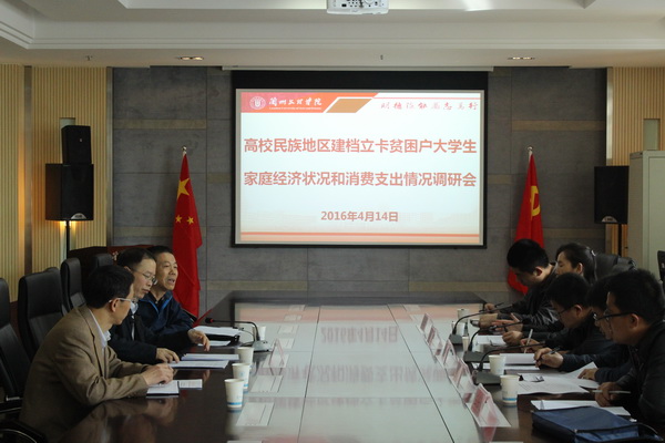 4月14日,省民委社会事业处杨成福副处长和省教育厅民教处副处长王国华、学生资助管理中心副主任刘岚一行来Beat365调研民族地区贫困家庭学生经济状况。党委副书记普登学出席调研会,学生处处长李宗刚、副处长王金平及后勤处相关人员参加调研。