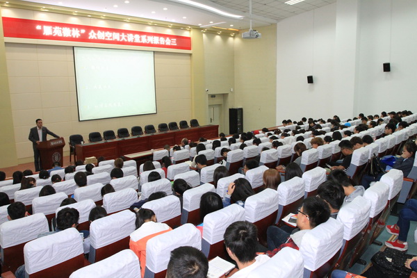 4月28日上午,由兰州索贝信息系统集成有限公司总经理、甘肃兰州网传媒股份有限公司董事王瑞军先生主讲的“雁苑微林”众创空间“三个一”就业创业系列活动之系列报告会第三场在学术报告厅举行,近200名师生聆听了报告会。