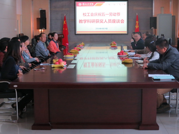 4月29日,在“五一”国际劳动节即将来临之际,校工会在综合楼第一会议室召开庆“五一”教学科研获奖人员代表座谈会。省级科技进步奖、省级教学名师、高校青年教师成才奖以及教学科研方面获得省上奖励的30多名教师代表济济一堂,畅谈自己的工作经验和体会。校党委副书记普登学出席会议并讲话,校工会主席路鹏主持座谈会。