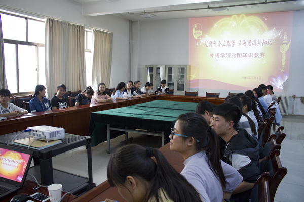 为纪念“五四”运动97周年,激励广大青年团员继承和弘扬“五四”精神,抒发爱国、爱党、爱团的情怀。5月4日晚外语学院分团委在学院会议室举办了“凝聚青春正能量 学习党团新知识”党团知识竞赛。学院7个团支部参加角逐。