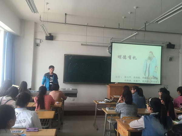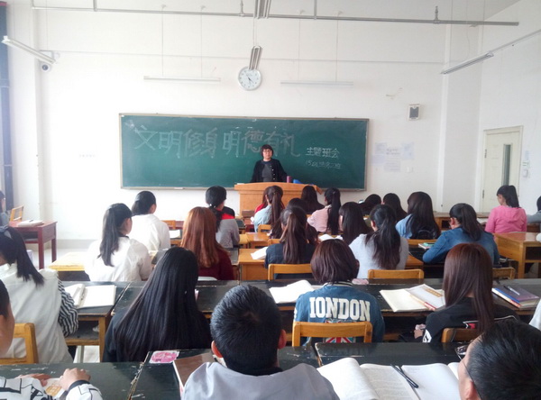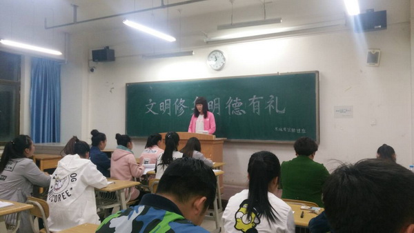 社会管理学院14、15级的8个班在班主任老师的组织下,以小组讨论、道德规范学习、个人体会分享等形式召开了“文明修身・明德有礼”主题班会。14级法律事务1班的同学们用一周时间查找校园内的不文明现象,并反省自身,制定了十条班级文明公约;14级法律事务2班的同学们在讨论的过程中,一致表示要爱护食堂卫生、自觉排队、不浪费粮食;14级社区管理与服务班的同学们以宿舍为单位,选派代表上台演讲,并且制作了精美的PPT,以生动形象的方式向大家传递文明;15级司法助理班的同学们从语言文明、行为文明、仪表文明、课堂文明、网络文明等八个方面探讨“我,应该怎样做”;15级社区管理与服务班的同学们归纳出热爱祖国、谦恭礼让、真诚相待、举止文明等30个大学生必备品德和八项具体做法。其他各班也分别制定了班级文明行动计划。