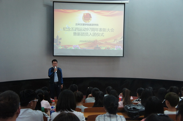 2016年5月5日下午,旅游学院分团委在综合楼401隆重举行纪念五四运动97周年表彰大会暨新团员入团仪式。分团委负责人牛晓春与旅游学院新团员、全体学生干部及参加了活动。