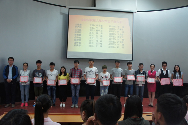 活动第一项是表彰及聘任仪式,牛晓春老师首先宣布了旅游学院2015年度五四红旗团支部、优秀团干和优秀团员的获奖名单,并为旅游学院新一届学生会干部、青媒中心成员及旅游学会干部颁发了聘书。