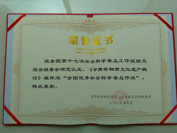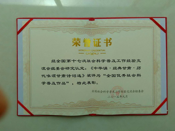 近日,甘肃省社科联传来喜讯,我院马晖、王金娥教授主编的《中华诵・经典甘肃・历代咏颂甘肃诗词选》、徐凤副教授主编的《甘肃非物质文化遗产概论》被评为“全国优秀社会科学普及作品”。