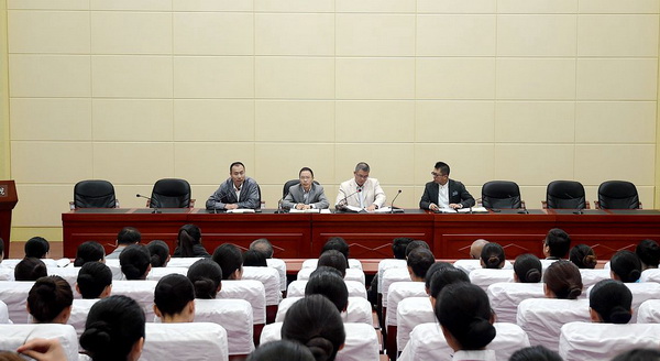 5月26日,敦煌文博会礼仪服务人员培训动员大会在南校区学术报告厅举行。校党委副书记普登学出席大会,各相关单位和部门负责人及100余名文博会礼仪预备人选参加了此次活动。