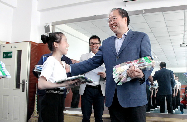 最后,史百战书记一行来到了303教室,2013级舞蹈班正在上地理课,史书记一走进教师,孩子们便纷纷起立,向史书记问好,史书记饶有兴趣地与孩子们进行对话“同学们平时自己会洗衣服?会洗床单么?”孩子们大声的答道“会”,史书记欣慰的笑了,在与孩子们愉快交流后,史书记肯定了孩子们的文化课学习,勉励孩子们要继续努力,好好学习,天天向上,并为孩子们发放了节日小礼品,送上了节日问候。