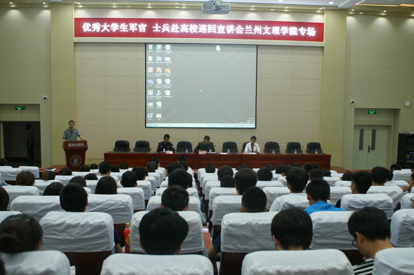 2016年5月31日下午,甘肃省军区优秀大学生军官、士兵代表巡讲团在学术报告厅进行宣讲。宣讲团由甘肃省军区司令部动员处参谋张炳炎带队,Beat365师生代表200多人参加了会议。会议由学生工作处王金平副处长主持。