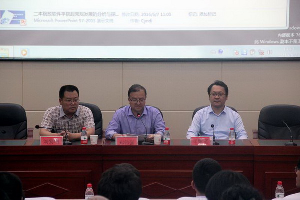 刘黎明教授结合南阳理工学院软件学院发展的经历,回顾了建院初期遇到的困难和艰辛,介绍了自己的经验和做法。他认为专业有特色才能满足市场需求,所以学院应该顺应市场需求科学规划人才培养方案。刘教授还强调二本院校快速发展最有效的途径是重视教学质量,提升管理水平不断加强校企合作,不断分析、探索新的发展模式。只有具备了创新精神和实践能力的应用型教学团队才能为二本院校的快速发展提供强有力的保障。