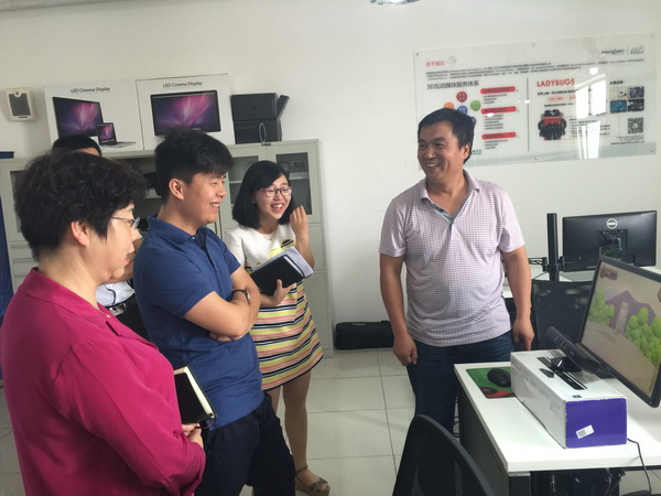 随后,由科技处处长王源陪同,文旗经理一行参观了Beat365数字媒体学院的虚拟现实实验室、虚拟交互开发实验室,新闻传播学院的虚拟演播室、造型艺术创意实验室、影视观摩赏析室,电子信息工程学院的控制系统开放实验室,美术学院的环境设计实训中心,观摩了Beat365康县智慧旅游平台VR虚拟旅游、Beat365唯一官方网站校园规划虚拟现实与漫游、硬币分拣器等参展项目,了解了Beat365在科技辅助教学、科技丰富教学形式方面的探索,并给予高度评价。