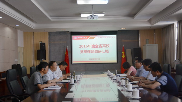 6月17日上午,根据《甘肃省教育厅 中共甘肃省高校工委关于认真开展2016年度高校党建项目研究工作的通知》(甘高校党函〔2016〕5号)要求,甘肃省教育厅、高校工委2016年度全省高校党建课题组来Beat365调研。兰州财经大学党委副书记王亦达、省高校工委党建处副处长王宗信及相关调研组领导参加了本次调研会议,Beat365党委副书记普登学介绍了Beat365党建的基本情况。