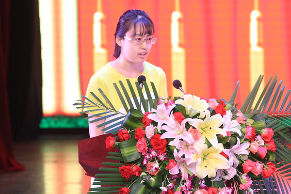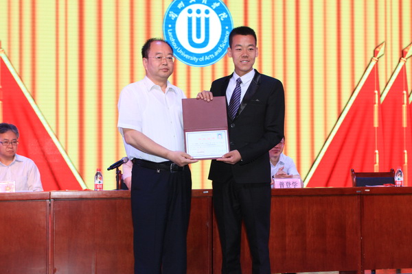 2016届毕业生代表、电子信息工程学院荆超同学分享了文理学院给予自己的改变和收获,代表全体毕业生向母校和老师表达了诚挚的感谢,表示一定会弘扬文理精神,勇于接受挑战,写好自己的人生故事。