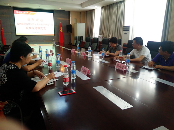 7月6日下午, 北京联合大学科研处副处长李静文一行四人来Beat365考察交流,并在综合楼第一会议室召开座谈会。科技处处长王源、新闻传播学院书记师克谦参加了会议。
