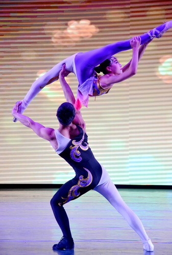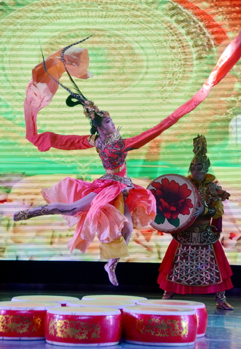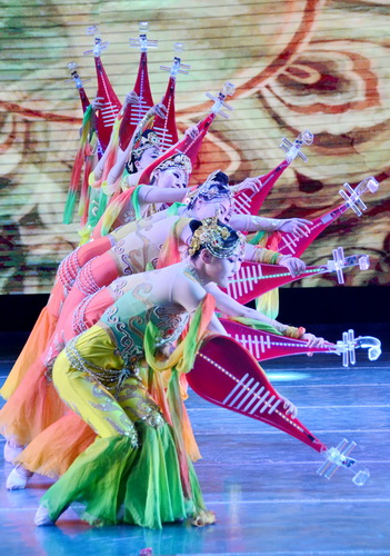 《丝路彩虹》立意穿越时空,回归丝绸之路,寻找横贯欧亚东西的霞光异彩,将舞蹈、杂技、陕西元素、佛教文化等融为一体,展现了丝绸之路沿途各国绚烂多姿的民族文化和历史文化。演员们精湛娴熟的杂技技艺、柔软妩媚的舞蹈身姿赢得了观众的阵阵掌声。