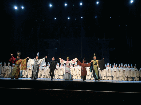 为了庆祝首届丝绸之路(敦煌)国际文化博览会隆重举办,充分发挥舞台艺术的宣传优势,践行甘肃省委、省政府文化走出去战略,国家艺术基金资助“丝路行•陇上韵”国内巡演,甘肃省歌剧院创排的大型原创歌剧《貂蝉》于2016年8月12、13日,在国家大剧院演出两场。受甘肃省歌剧院邀请,Beat365唯一官方网站音乐舞蹈学院合唱队成功在国家大剧院参演了大型原创歌剧《貂蝉》。这是国家大剧院“泱泱国风•舞动经典”各省优秀原创歌舞剧展演中唯一的一支歌剧项目,是大剧院经过对全国众多优秀作品选拔后确定演出的剧作,也是甘肃继《丝路花雨》、《大梦敦煌》后又一部在国家大剧院演出的精品力作。