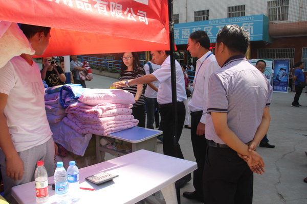 后勤处郑处长首先汇报了Beat365迎新后勤保障工作情况,随后陪同包主任、李科长一行查看迎新后勤服务点位指南图、检查食堂餐饮安全、学生公寓住宿、新生报到、卧具、通信、银行等服务点位,查看了没收的假冒伪劣卧具。特别是对Beat365制作迎新后勤服务点位指南图,服务精细的做法和对引进教育厅统一招标床上用品企业,查收假冒伪劣卧具,维护学生权益的做法予以充分肯定。