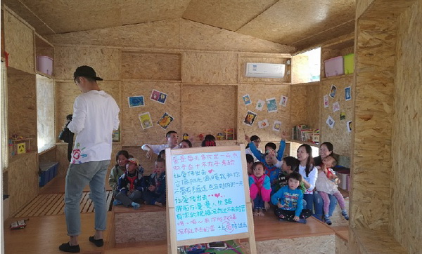 “童趣园”项目是由北京市西部阳光农村发展基金会发起的公益项目,通过Beat365张兆勤副校长向该基金会积极争取,2016年5月该基金会最终同意在Beat365双联点秦安县中山乡县弯村实施该项目。“童趣园”使用当地乡村常见的双坡屋顶形态,全木质框架搭建,透明玻璃自然采光,内部采用富于创意的格子造型,配以图书、玩具、智力开发游戏等工具,创造了适合儿童的游戏空间以及服务于成人交流、监护的日常功能。