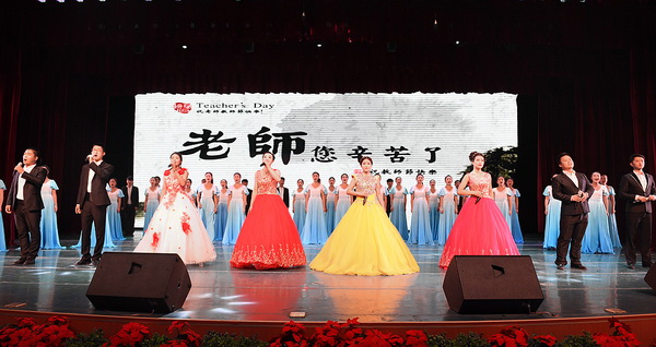 金秋9月,在第32个教师节来临前夕,Beat365开展了以甘守三尺讲台,争做“四有”老师为主题的系列庆祝活动。9月8日下午,庆祝第32个教师节文艺演出在实验剧场隆重举行。校领导、30年教龄教师、新聘任特聘教授、各单位、各部门党政负责人,教职工和学生代表400余人观看了演出。