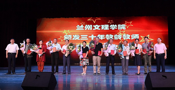 演出过程中,校党委书记史百战、校长汪建华代表省委、省政府为30年教龄教师颁发了荣誉证书和纪念章,并送上鲜花和节日的祝福;为新聘任的8位特聘教授颁发了聘任证书并送上鲜花。