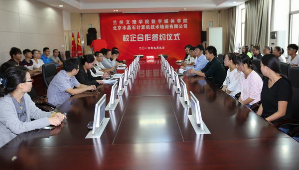 签约仪式由数字媒体学院党总支陈小琴书记主持,教务处副处长张莉副教授参加了签约仪式并代表学校致辞。数字媒体学院相关专业教师及部分学生代表共60余人参加了签约仪式。