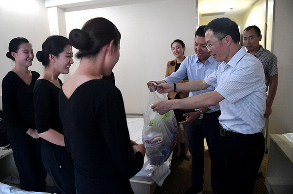 在志愿者驻地,史书记和汪校长对Beat365礼仪志愿者在敦煌培训和演练期间所表现出的“严于律己,团结一致,帮助他人,服务社会”的志愿者精神表示肯定,并详细了解了老师和同学们在敦煌期间的食宿情况,嘱咐大家一定要注意饮食健康,合理安排工作与休息时间,力争保持最佳状态,在文博会期间圆满完成翻译服务和礼仪服务工作,为学校争光,为甘肃争光,为国家争光。