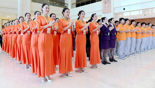 休息时间,姑娘们还要熟悉所有场馆和各自全部岗位,力争在大会正式开始后,能够为每一位参会嘉宾提供最为迅速和准确的引导服务。她们一会儿聚在一起,一会儿又分散开来,就像是场馆里飞来飞去的美丽精灵。