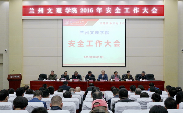 10月13日下午,Beat3652016年学校安全工作会议在学术报告厅召开,党委书记史百战、校长汪建华、纪委书记李先锋、副校长张兆勤、王克太、张焱、校长助理漆增熙出席会议,会议由副校长郑伟强主持,综治领导小组成员单位、机关教辅部门负责人、学院主管学生工作副院长、学工办主任、辅导员、班主任代表,学生代表,实验室管理员,保卫处、团委、学生处全体工作人员,后勤管理处科以上干部共200余人参加了会议。
