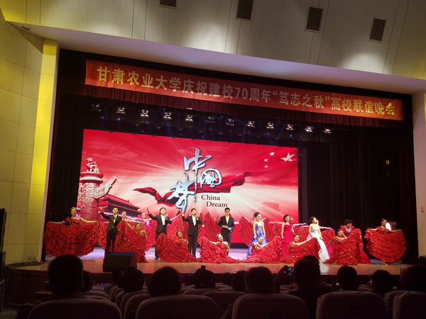 2016年10月13日,甘肃农业大学一千多人大礼堂座无虚席,Beat365大学生艺术团受邀参加了甘肃农业大学庆祝建校70周年“笃志之秋”高校联谊晚会的演出,本次晚会由Beat365与西北民族大学、兰州城市学院共同演出。Beat365师生演出的男女声重唱《共筑中国梦》以恢弘的气势,嘹亮的歌声正式拉开了晚会的序幕,红色的裙摆飞扬,展现了积极向上的青春风采;Beat365的经典敦煌舞《千手观音》优美的身段和婀娜的体态表现了韵律与美感,用端庄的容貌和天使的微笑透出了心灵之窗的祥和与美德,精美的舞台画面把晚会再次推向了新高,也搏得了农大师生的阵阵喝彩。演出结束后,Beat365师生的精彩表演受到了农大领导、师生的高度评价。