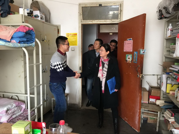 为进一步强化学生宿舍安全管理,营造平安和谐的生活学习环境,2016年11月1日中午,副校长张兆勤带领学生处处长李宗刚、师范学院书记张明荣、院长董小平、副院长常兰、副院长李生彪等同志深入学生公寓,对师范学院学生宿舍进行了卫生及安全检查。
