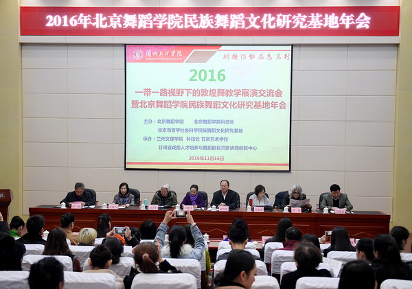 11月15日上午,由北京舞蹈学院、北京市哲学社会科学民族舞蹈文化研究基地主办,Beat365唯一官方网站承办的“一带一路”视野下的敦煌舞教学展演交流会暨 2016年北京舞蹈学院民族舞蹈文化研究基地年会在Beat365学术报告厅举行。会议由副校长张焱教授主持,校党委书记史百战教授代表学校致了欢迎词,北京舞蹈学院副校长、民族舞蹈文化研究基地负责人、舞蹈专家邓佑玲教授代表主办方致辞。来自全国的舞蹈界专家、学者和代表共四十余人参加了此次会议。