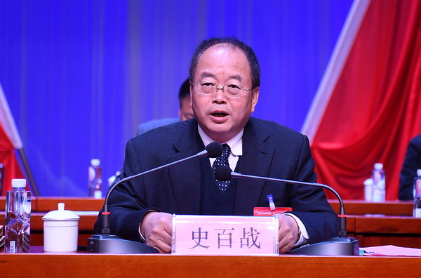 校党委书记史百战发表讲话,并代表学校党委,对全体代表的积极参与和大力支持、对全体工作人员的辛勤劳动表示衷心的感谢,向新当选的工会委员会、教代会执委会和各专门委员会的同志表示祝贺。