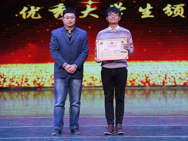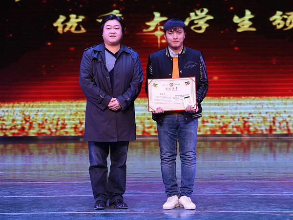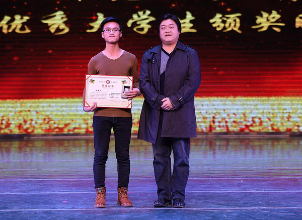 苑毅老师为“学生干部之星”杨涛颁奖