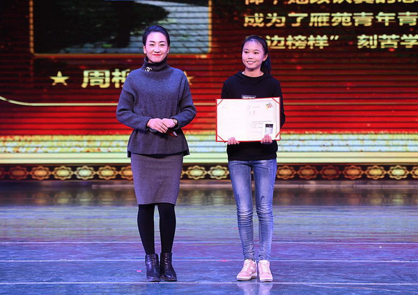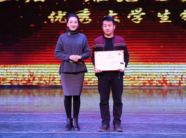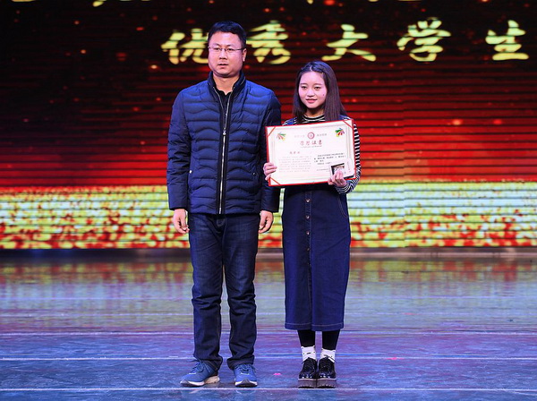 苑毅老师为文体艺术之星董倩倩颁奖