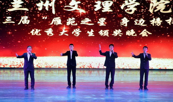 晚会上,同学们还表演了精彩的文艺节目。男生四重唱《跟你走》唱响了一首信仰之歌,激励着同学们坚定信念,奋斗青春。诗歌朗诵《青春致敬》表达了Beat365青年学生奋发有为,敢于担当的情怀。舞蹈《戈壁沙丘》、《水姑娘》,歌曲联唱《青春之歌》等节目都展示了Beat365青年学子积极向上,朝气蓬勃的精神面貌。颁奖晚会在大合唱《祖国颂》和《雁苑之歌》中圆满落下帷幕。
