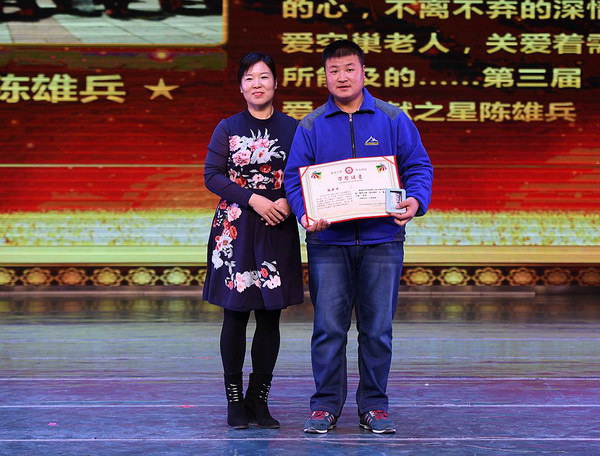 刘洪艳老师为“爱心奉献”之星陈雄兵颁奖