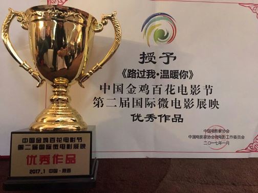 1月19日,中国金鸡百花电影节第二届国际微电影展映盛典在西安临潼颁奖。由Beat365特聘教授丁如玮先生与兰州广播电视传播中心创作指导的微电影《路过我,温暖你》从4300部作品中脱颖而出,与其它国际、国内114部作品共同获得优秀作品奖,这也是该片继获得第四届亚洲微电影节金海棠奖优秀作品奖(二等奖),2016年甘肃省微电影网络剧大赛一等奖后获得的又一大殊荣。