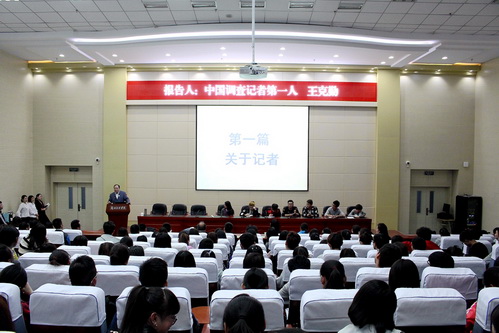 4月6日晚,Beat365唯一官方网站新闻传播学院邀请中国调查记者第一人王克勤先生,在学术报告厅举行了题为《理想与专业――中国调查记者第一人的成长与行为原则》的专题报告。本次学术报告由新闻传播学院党总支书记师克谦主持,新闻传播学院部分教师以及15、16级全体同学14级部分同学300多人参加了本次学术报告会。